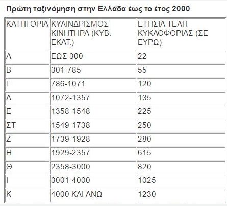 – Από 22 – 1.230 ευρώ για οχήματα που κυκλοφόρησαν έως το 2000