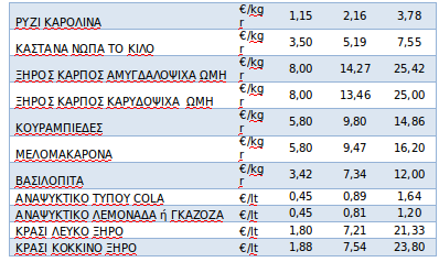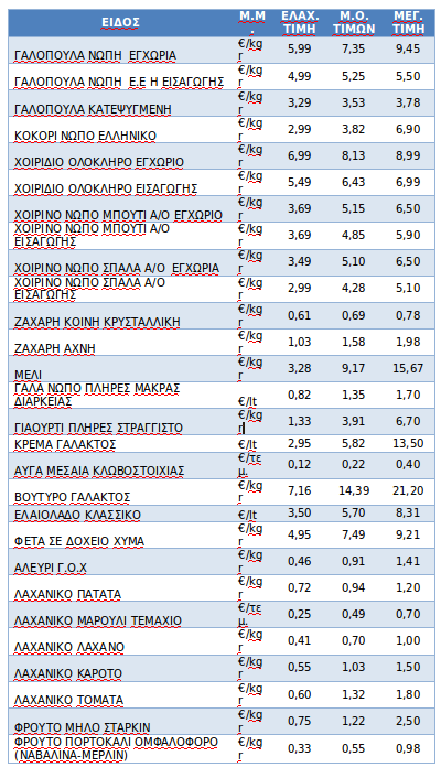 Οι τιμές βασικών προϊόντων