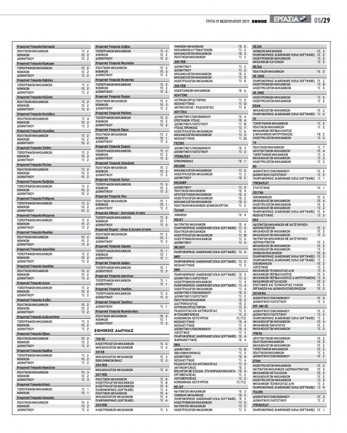 Με βάση αυτή την καταγραφή, η οποία βέβαια υπόκειται σε διορθώσεις και συµπληρώσεις, φαίνεται πως οι νέες θέσεις που θα προκηρυχθούν θα αφορούν τα υπουργεία Αµυνας (περί τις 540 θέσεις), Εργασίας (περί τις 50 θέσεις), Αγροτικής Ανάπτυξης και Τροφίµων (περί τις 930 θέσεις), Ναυτιλίας (περί τις 150 θέσεις), Οικονοµικών (περί τις 400 θέσεις), Υποδοµών (περί τις 400 θέσεις) και Ψηφιακής Πολιτικής (περί τις 90 θέσεις). Οι ζητούµενες ειδικότητες θα είναι πολλές, όπως γεωπόνοι, διοικητικοί/λογιστικοί υπάλληλοι, µηχανικοί, νοµικοί, πολιτικοί µηχανικοί κ.ά.