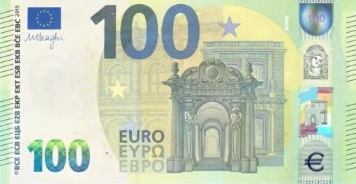 Στα νέα χαρτονομίσματα των 100 ευρώ επικρατεί κυρίως το πράσινο χρώμα, ενώ σε εκείνα των 200 ευρώ θα κυριαρχούν αποχρώσεις του κίτρινου και του καφέ. Σε όλα, όμως, υπάρχει αναφορά στην ελληνική μυθολογία, καθώς όταν τα κοιτάζει κανείς στο φως διαγράφεται και στις δύο πλευρές το πορτρέτο της μυθολογικής Ευρώπης.