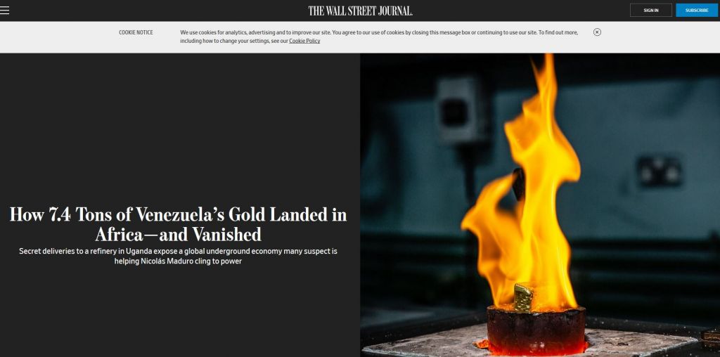 Στην προσπάθεια του προέδρου της Βενεζουέλας, Νικολάς Μαδούρο, να αποφύγει τις αμερικανικές κυρώσεις μεταφέροντας χρυσό στην Ουγκάντα αναφέρεται η αμερικανική εφημερίδα «Wall Street Journal».