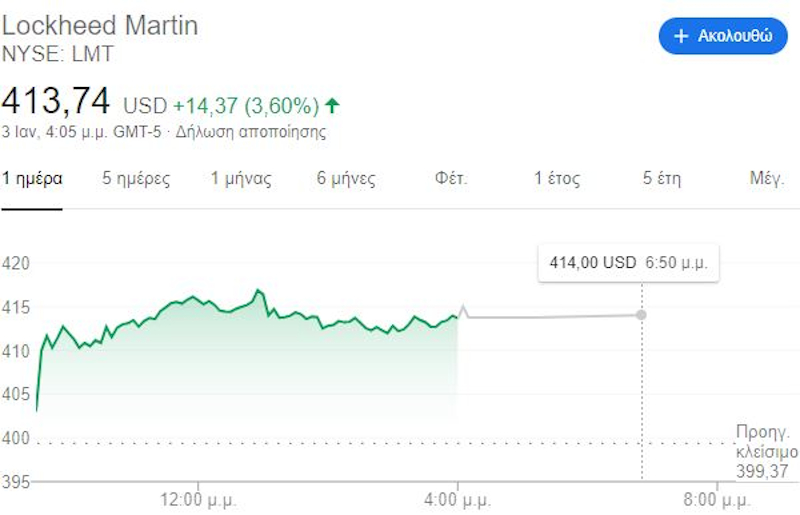 H μετοχή της Lockheed Martin την Παρασκευή, 3 Ιανουαρίου