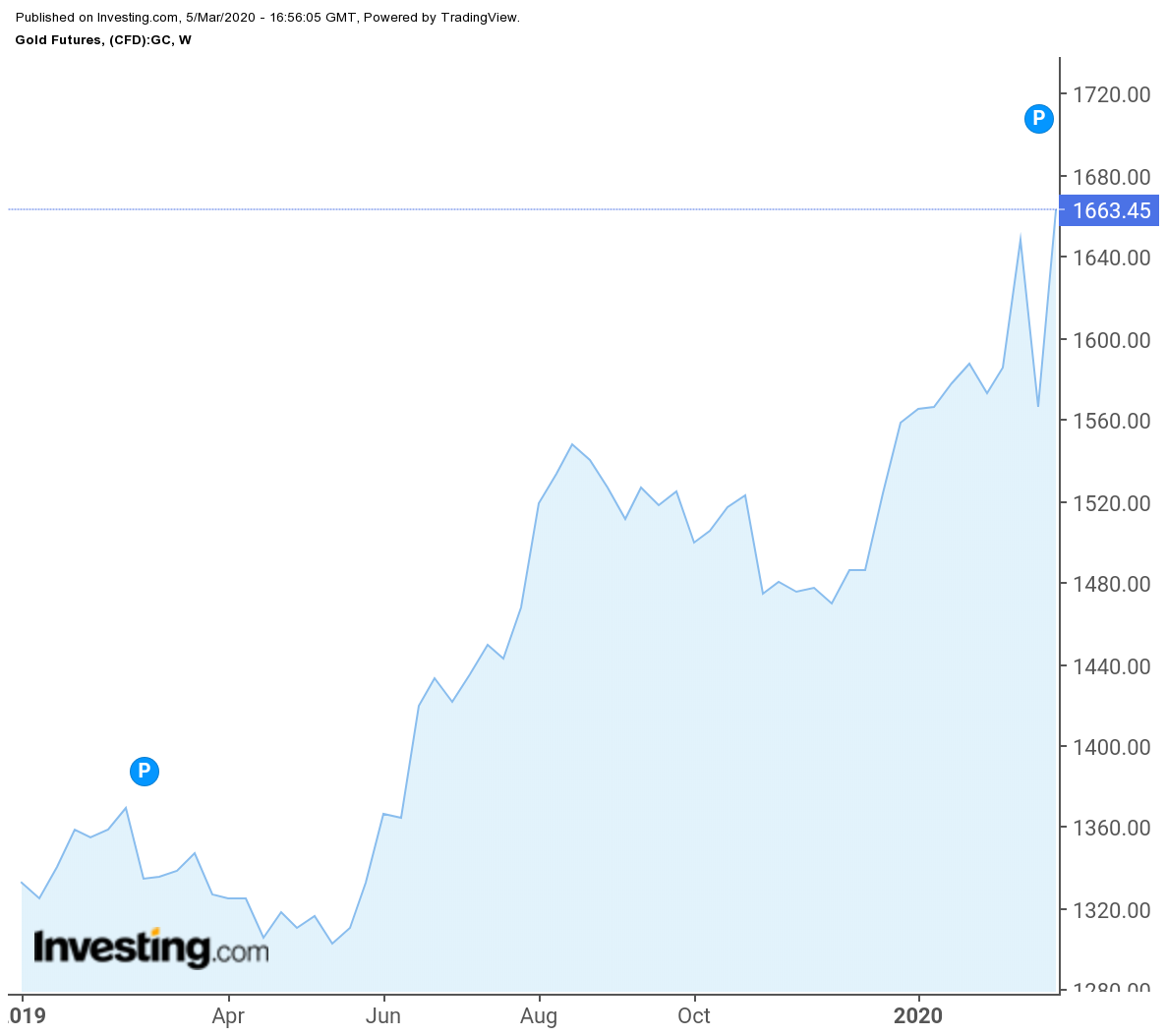 Τα κύματα πωλήσεων που σαρώνουν βίαια τις χρηματαγορές και πολύ περισσότερο τα στοιχεία που δημοσιοποιούνται σε καθημερινή βάση, δείχνοντας ότι οι οικονομικές επιπτώσεις του κορωνοϊού θα είναι βαριές, στρέφουν όλο και περισσότερους στη σταθερά του χρυσού, που βρέθηκε χθες στα επίπεδα των 1.683 δολαρίων!
