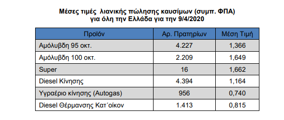 Ακόμα χαμηλότερα έπεσαν οι τιμές των καυσίμων στην Ελλάδα την Πέμπτη 9 Απριλίου.