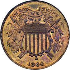 Με το ξέσπασμα του Αμερικανικού Εμφυλίου υπήρξαν αρκετοί που υποστήριξαν πως το «In God We Trust» πρέπει να αναγράφεται στα νομίσματα, ώστε να βοηθήσουν τους Βόρειους να κερδίσουν, εκτός από το πεδίο της μάχης, και σε εκείνον της ιδεολογίας. Μια τέτοια φράση θα έβαζε τον σκοπό κάτω από την προστασία του Θεού. Το 1863, όταν φαινόταν πως οι Βόρειοι θα κέρδιζαν, το Κογκρέσο πέρασε έναν νόμο που έλεγε πως μια φράση που θα συμβόλιζε την εμπιστοσύνη στον Θεό, θα έπρεπε να αναγράφεται στα νομίσματα. Έτσι το Κογκρέσο ενέκρινε στις 22 Απριλίου του 1864 το σχέδιο που στο μπροστά μέρος έγραφε αρχικά «Our God and our Country», στο πίσω έγραφε «In God We Trust».