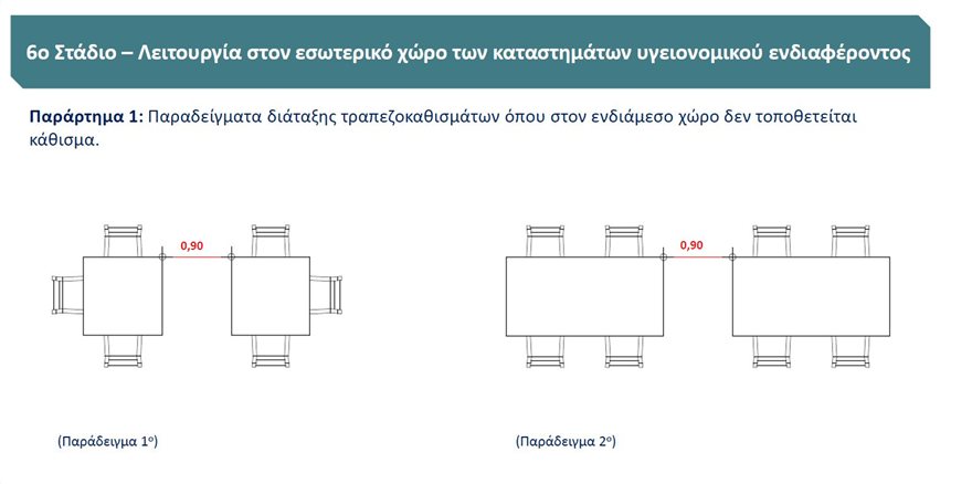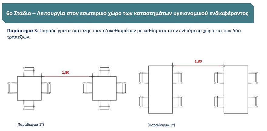 Παράλληλα ο κ. Παπαθανάσης παρουσίασε σχεδιαγράμματα για τις αποστάσεις που θα πρέπει να έχουν οι καρέκλες και τα τραπέζια.