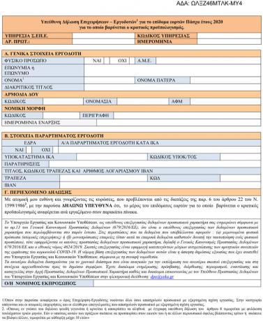 Με απόφαση του υπουργού Εργασίας Γιάννη Βρούτση, προστίθεται ειδικό έντυπο «Υπεύθυνη Δήλωση Επιχειρήσεων-Εργοδοτών για το επίδομα εορτών Πάσχα έτους 2020, για το οποίο βαρύνεται ο κρατικός προϋπολογισμός».