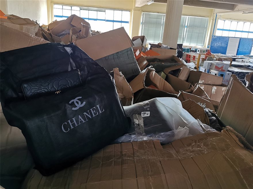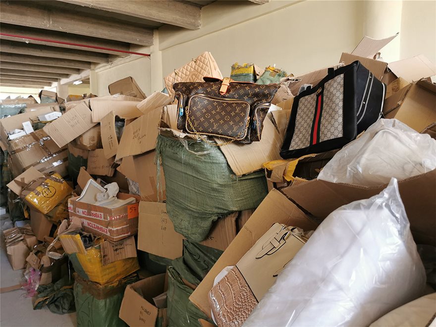 Σε ένα φορτίο- γίγας που χρειάστηκαν 13 φορτηγά για να το μεταφέρουν στην αποθήκη του ΣΔΟΕ, η φίρμα Louis Vouitton έχει την τιμητική της. Το καταλαβαίνεις από τα χιλιάδες πορτοκαλί κουτιά που εντοπίζεις στα περισσότερα χάρτινα κιβώτια, μέσα στα οποία θα βρεις πορτοφόλια, τσάντες κι άλλα αξεσουάρ. Τα αυθεντικά κοστίζουν μερικές χιλιάδες ευρώ το κομμάτι, ενώ οι απομιμήσεις που έχουμε μπροστά μας πωλούνται από 100 έως 200 ευρώ, ανάλογα το αντικείμενο και την ζήτηση του.