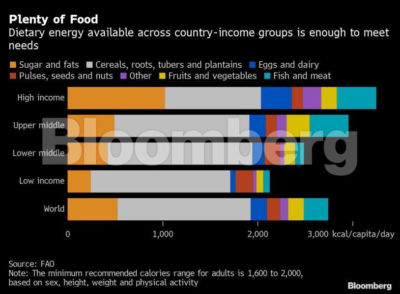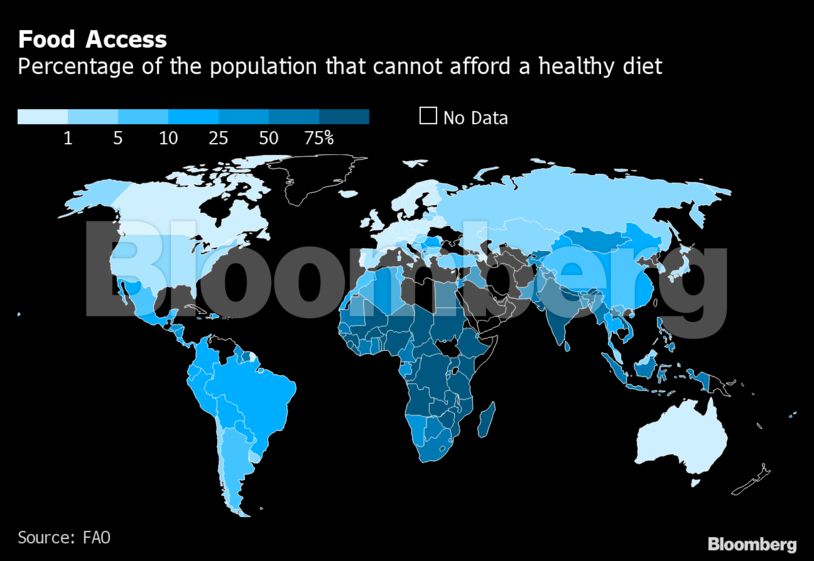 Δεδομένα από τα Ηνωμένα Έθνη δείχνουν ότι σε όλο τον κόσμο, παράγονται περισσότερες από αρκετές θερμίδες διαθέσιμες για να καλύψουν τις ανάγκες κάθε ατόμου. Αλλά ακόμη και στις ΗΠΑ, την πλουσιότερη χώρα στον κόσμο, σχεδόν το 2% του πληθυσμού, ή περισσότερα από 5 εκατομμύρια άτομα, δεν μπορούν να αντέξουν οικονομικά μια υγιεινή διατροφή (αυτή που προστατεύει από όλες τις μορφές υποσιτισμού).