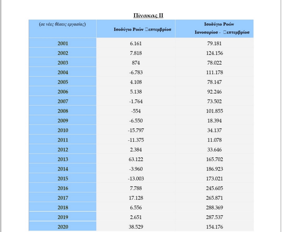 Έτσι, το ισοζύγιο των ροών μισθωτής απασχόλησης του πρώτου εννεάμηνου του έτους 2020 είναι θετικό και διαμορφώνεται στις 154.176 νέες θέσεις εργασίας.