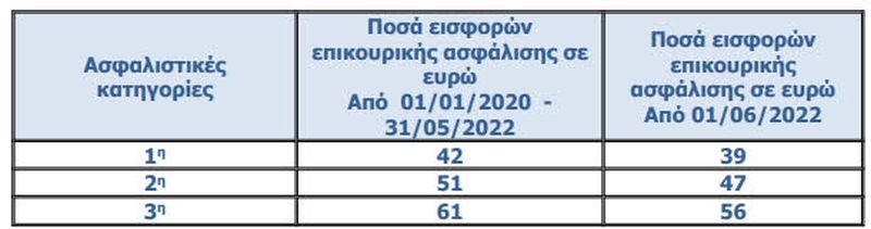 Από 01/01/2020, για την καταβολή των ασφαλιστικών εισφορών, οι αυτοτελώς απασχολούμενοι, οι ελεύθεροι επαγγελματίες και οι έμμισθοι δικηγόροι του οικείου τομέα του κλάδου επικουρικής ασφάλισης του τ. Ε.Τ.Α.Α., κατατάσσονται σε τρεις (3) ασφαλιστικές κατηγορίες, στις οποίες αντιστοιχεί ποσό μηνιαίας ασφαλιστικής εισφοράς, ως εξής: