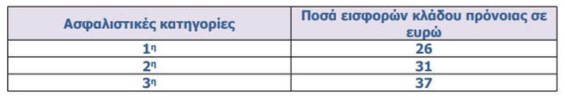 Από 01/01/2020, για την καταβολή των ασφαλιστικών τους εισφορών οι ανωτέρω ασφαλισμένοι του κλάδου Πρόνοιας του τ. Ε.Τ.Ε.Α.Ε.Π., κατατάσσονται σε τρεις (3) ασφαλιστικές κατηγορίες, στις οποίες αντιστοιχεί ποσό μηνιαίας ασφαλιστικής εισφοράς ως εξής: