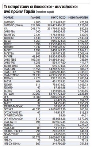 Συνολικά οι ζώντες δικαιούχοι-συνταξιούχοι και οι αποβιώσαντες είναι 1.145.551 και δικαιούνται 1.325.324.058,08 ευρώ.
