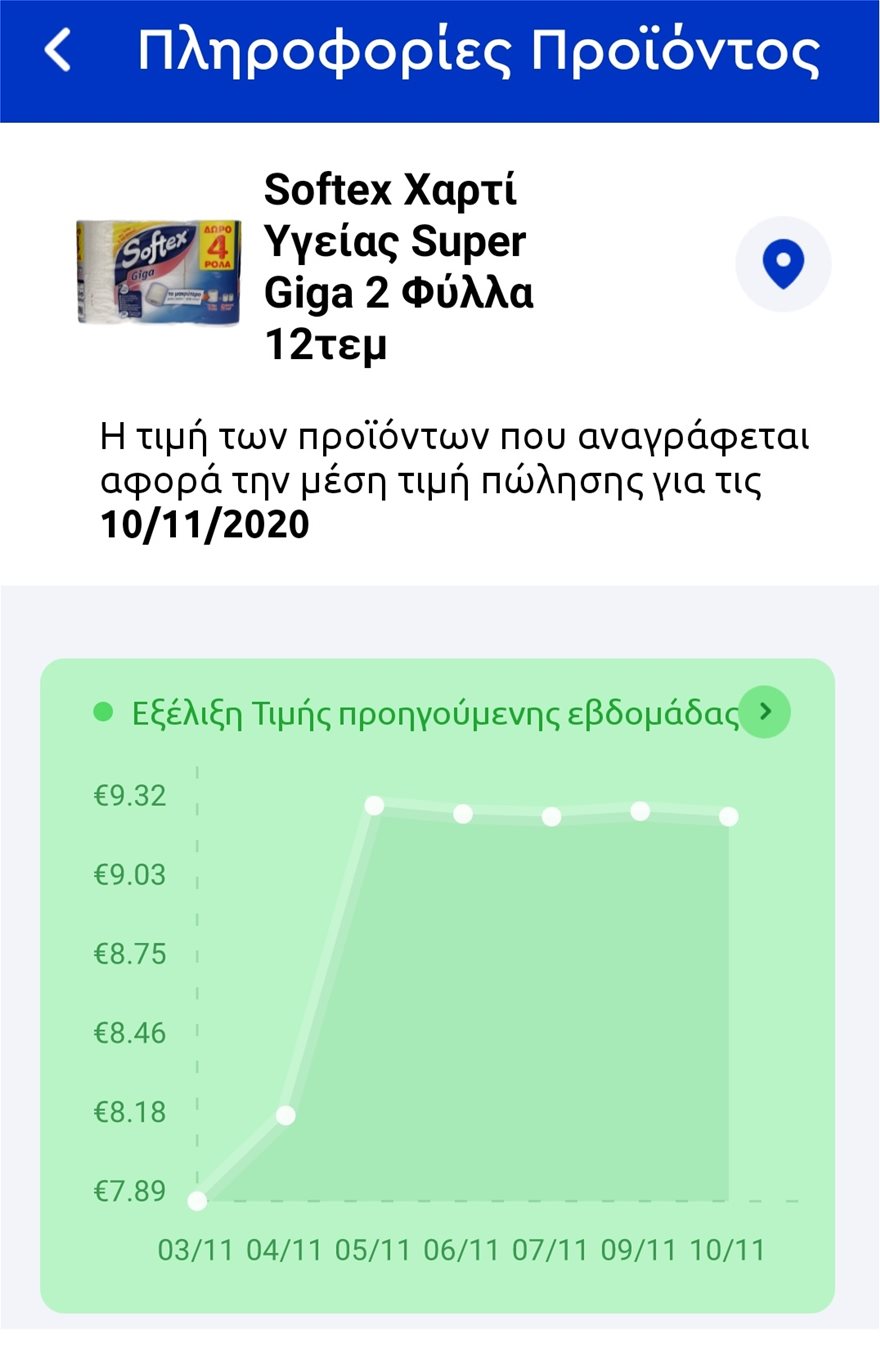 Δημοφιλής ετικέτα χαρτιού υγείας. Απ’ τα 7,89 ευρώ λίγο πριν τις ανακοινώσεις για το lockdown ξαφνικά η μέση τιμή έφθασε στα 9,32 ευρώ