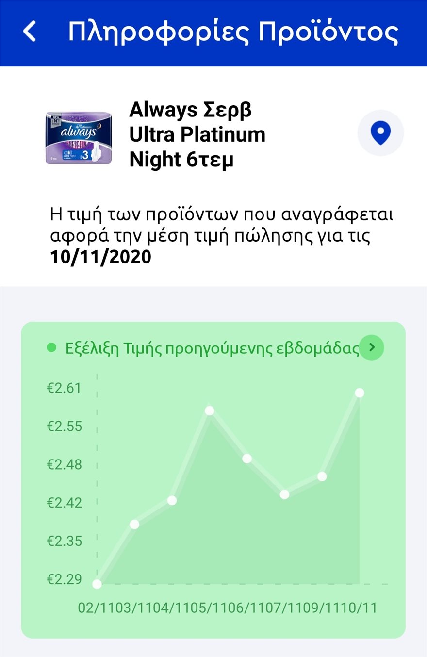 Δημοφιλές προϊόν σερβιέτας. Απ’ τα 2,29 ευρώ η μέση τιμή πλέον έχει φθάσει στα 2,61 ευρώ.