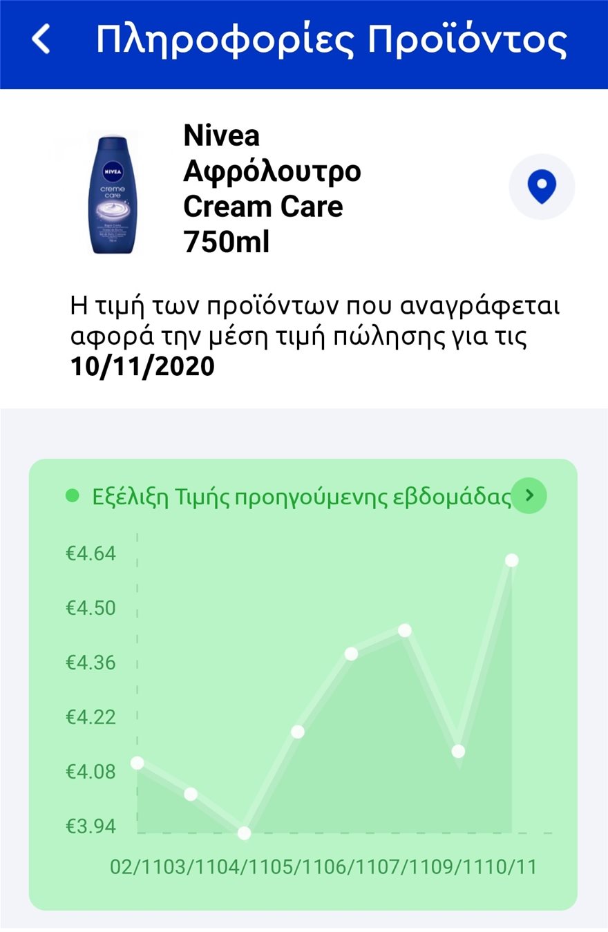 Αφρόλουτρο γνωστής εταιρείας. Από 4,08 ευρώ η μέση τιμή τη Δευτέρα 2 του μήνα, πλέον κινείται στα 4,64 ευρώ
