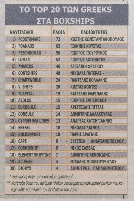 Η λίστα των τοπ 20 Ελλήνων πλοιοκτητών στα Boxships