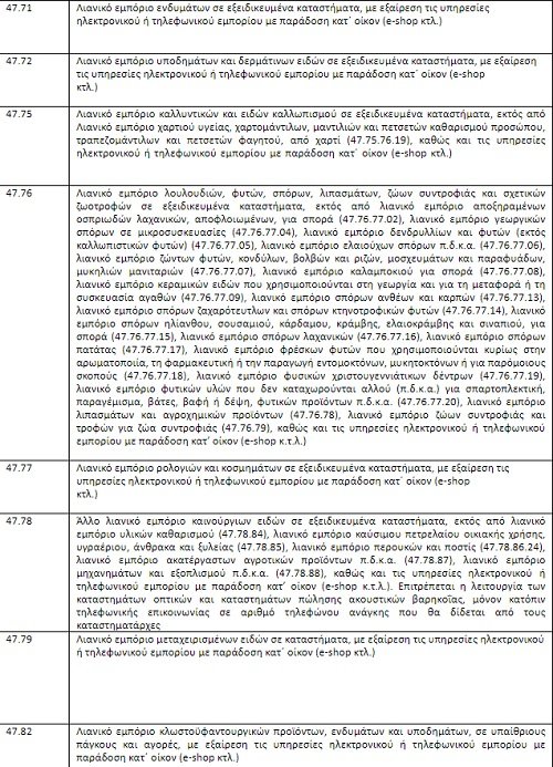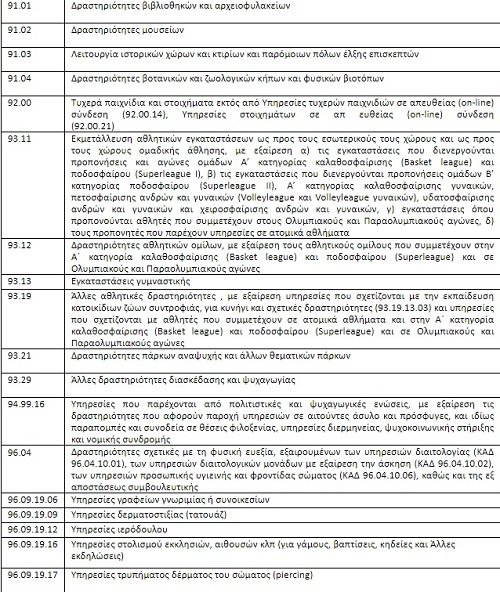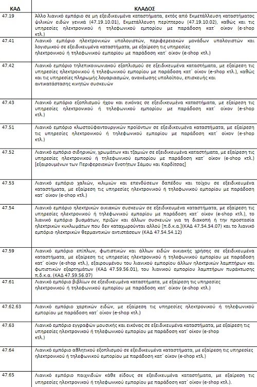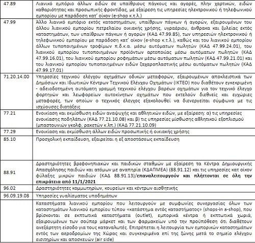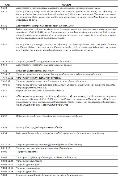 ΠΙΝΑΚΑΣ ΚΩΔΙΚΩΝ ΑΡΙΘΜΩΝ ΔΡΑΣΤΗΡΙΟΤΗΤΑΣ ΠΟΥ ΕΠΑΝΑΛΕΙΤΟΥΡΓΟΥΝ ΚΑΙ ΠΛΗΤΤΟΝΤΑΙ ΣΕ ΟΛΗ ΤΗΝ ΕΠΙΚΡΑΤΕΙΑ (από 18/1/2021 έως 25/1/2021)