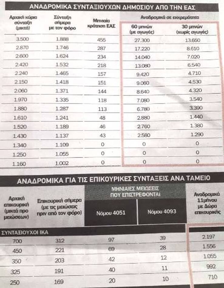 Τα ποσά που διεκδικούνται ανάλογα με το ύψος σύνταξης, τις κρατήσεις και το Ταμείο (Δημόσιο ή ιδιωτικό) ξεκινούν από τα 500 ευρώ και φτάνουν ακόμη και στις 27.300 ευρώ.