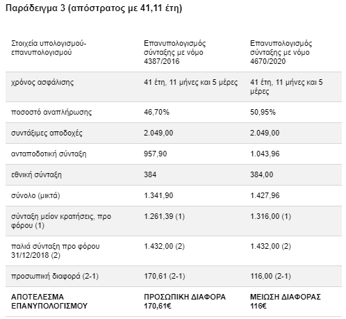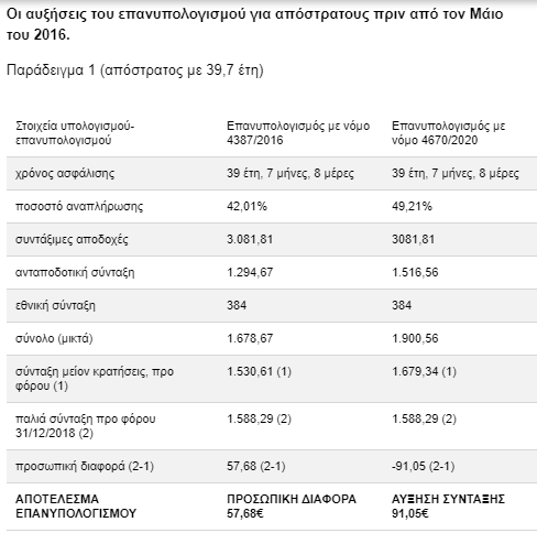 Αν όμως δεν ερχόταν ο νέος επανυπολογισμός με το νόμο 4670/2020, τότε θα έμενε με τα 890 ευρώ σύνταξης και τα 180 ευρώ προσωπικής διαφοράς από τον επανυπολογισμό του νόμου Κατρούγκαλου.