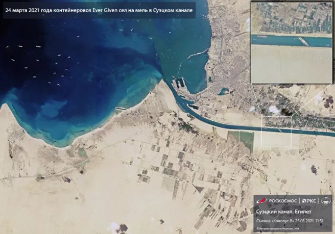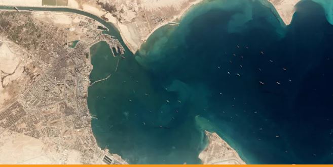 Δορυφορικές εικόνες δείχνουν ουρές εκατοντάδων πλοίων και στις δύο πλευρές του προσωρινά κλειστού καναλιού του Σουέζ, το οποίο έχει «παγώσει» για μέρες την παγκόσμια οικονομία.