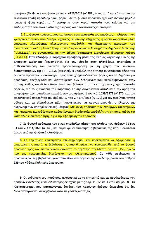 «6. Στα φυσικά πρόσωπα που εμπίπτουν στην αναστολή του παρόντος, η πλήρωση των κριτηρίων πιστοποιείται δυνάμει σχετικής βεβαίωσης πληγέντος, η οποία χορηγείται μέσω ψηφιακής πλατφόρμας ηλεκτρονικής υποβολής και διαχείρισης αιτήσεων που αναπτύσσεται από τη Γενική Γραμματεία Πληροφοριακών Συστημάτων Δημόσιας Διοίκησης…