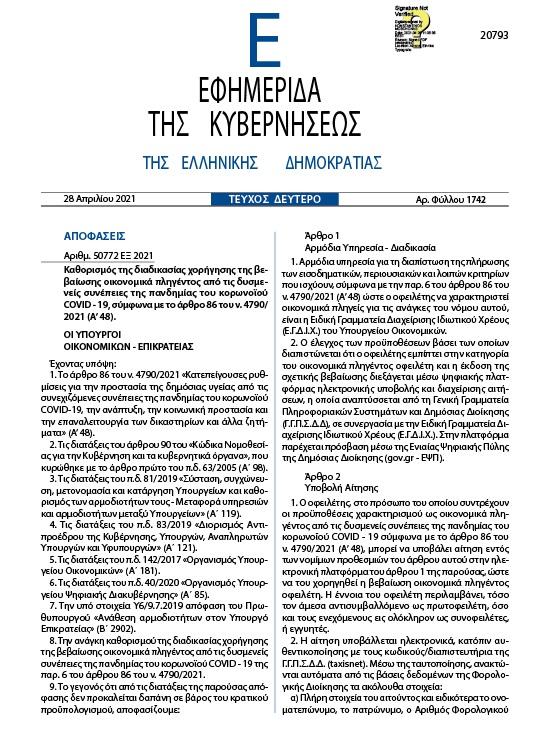 «2. Ο έλεγχος των προϋποθέσεων βάσει των οποίων διαπιστώνεται ότι ο οφειλέτης εμπίπτει στην κατηγορία του οικονομικά πληγέντος οφειλέτη και η έκδοση της σχετικής βεβαίωσης διεξάγεται μέσω ψηφιακής πλατφόρμας…».