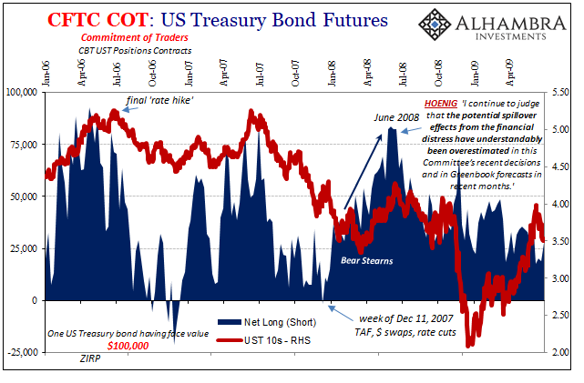 Η τελευταία φορά που παρατηρήθηκε «πολυκοσμία» στην αγορά των futures Treasuries, ήταν το 2008, όταν επήλθε και η άνευ προηγουμένου χρηματοπιστωτική κρίση.