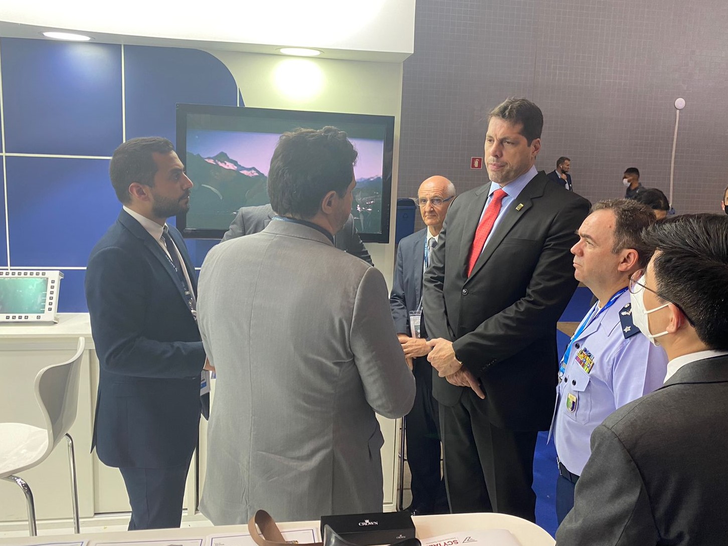 (Φωτό επάνω: Ο Γραμματέας Αμυντικών Προϊόντων του Υπουργείου Άμυνας της Βραζιλίας, Marcos Degaut, σε επίσκεψη στο περίπτερο της ΤΗΕΟΝ SENSORS στη Mostra BID στη Βραζιλία)