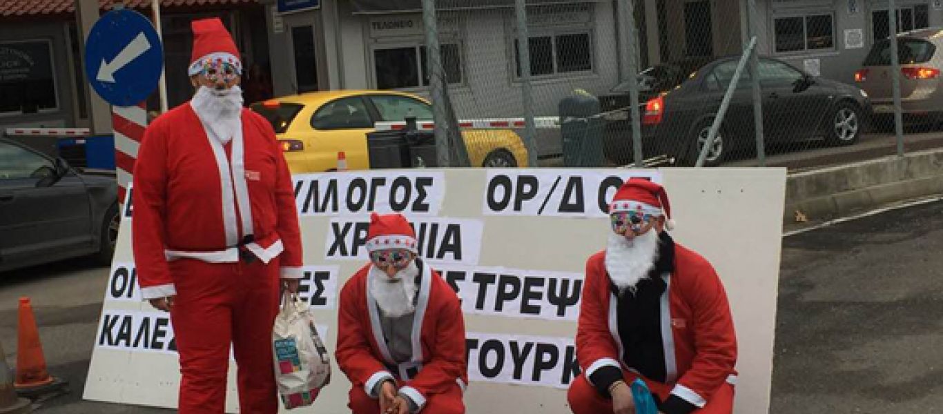 Οι καταστηματάρχες, αφού όλοι τους ντύθηκαν με τη στολή του Αη – Βασίλη, χαιρετούν από το πρωί τους οδηγούς που περιμένουν στην αναμονή για να περάσουν τα σύνορα, κερνώντας τους μάλιστα από ένα μπουκαλάκι νερό αλλά και ζαχαρωτά!