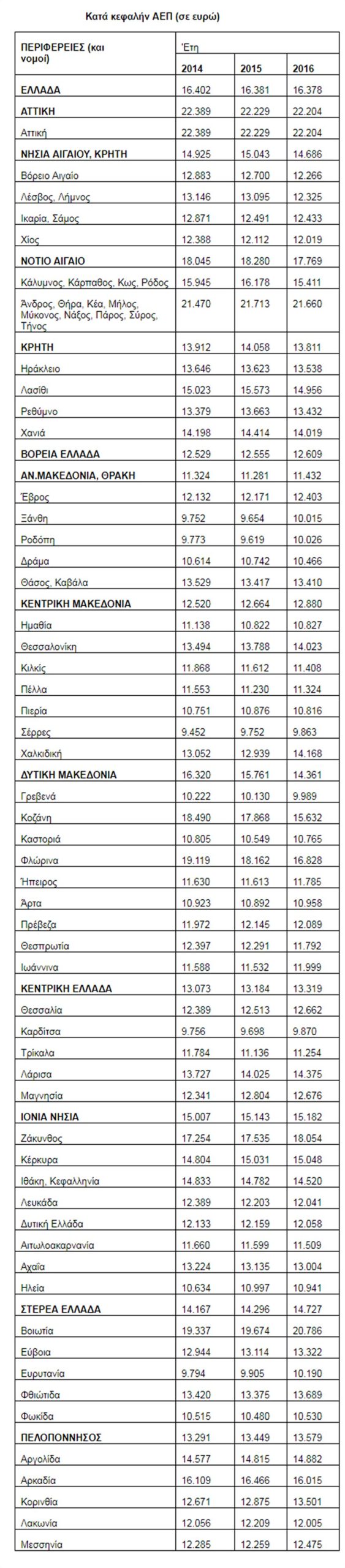 – Στο Νότιο Αιγαίο ήταν 15.945 ευρώ και μειώθηκε στα 15.411 ευρώ