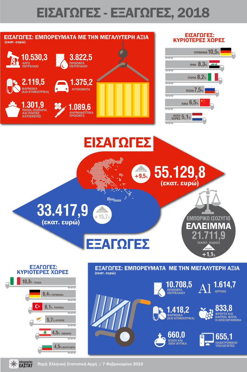 Τι εισάγει και τι εξάγει περισσότερο η Ελλάδα