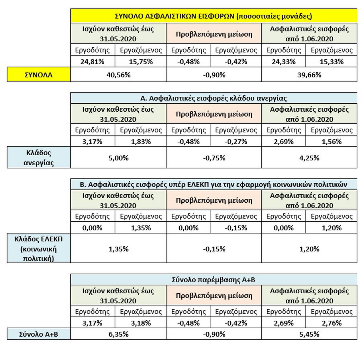 Ασφαλιστικές εισφορές: Αναλυτικά οι μειώσεις που θα ισχύσουν από 1η Ιουνίου (φώτο)