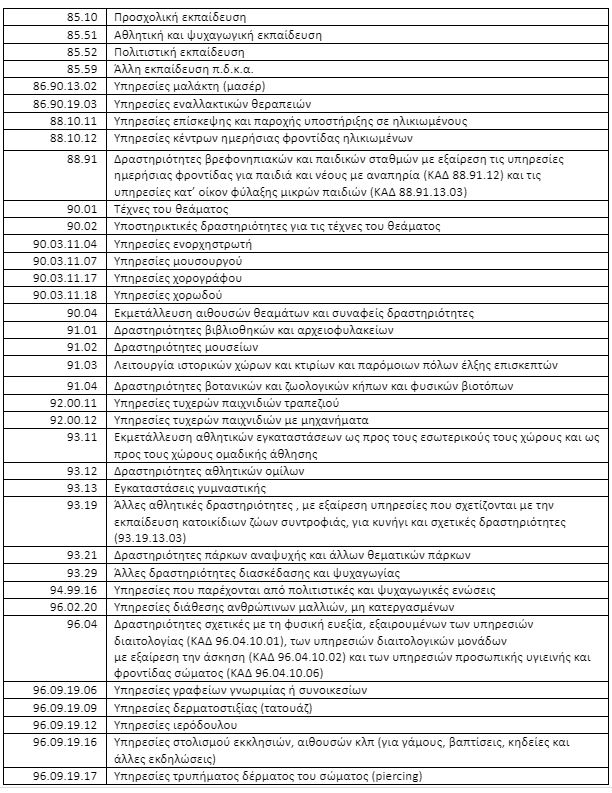 ΠΑΡΑΡΤΗΜΑ Α: ΠΙΝΑΚΑΣ ΚΩΔΙΚΩΝ ΑΡΙΘΜΩΝ ΔΡΑΣΤΗΡΙΟΤΗΤΑΣ ΠΟΥ ΠΛΗΤΤΟΝΤΑΙ