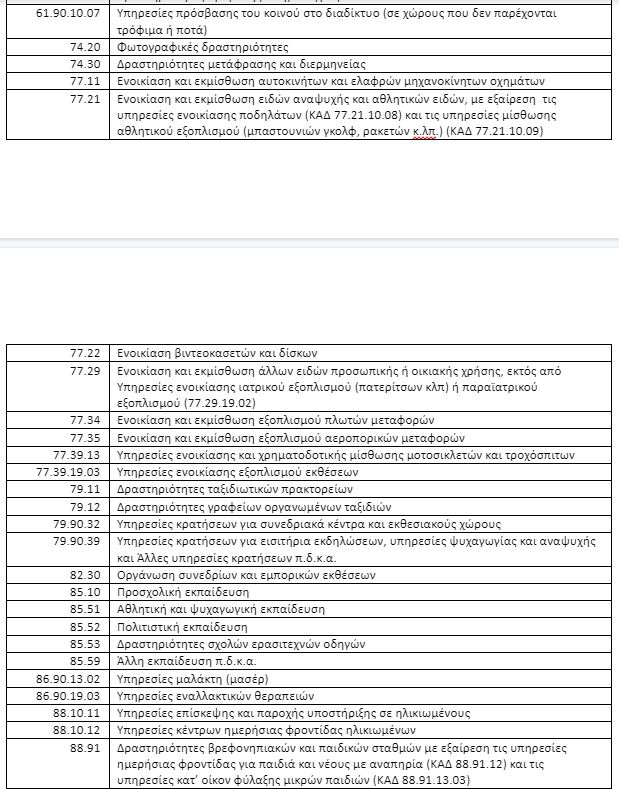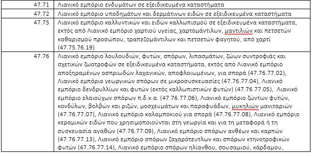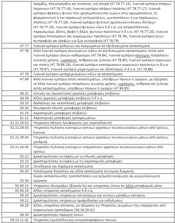 ΠΑΡΑΡΤΗΜΑ Α: ΠΙΝΑΚΑΣ ΚΩΔΙΚΩΝ ΑΡΙΘΜΩΝ ΔΡΑΣΤΗΡΙΟΤΗΤΑΣ ΠΟΥ ΠΛΗΤΤΟΝΤΑΙ