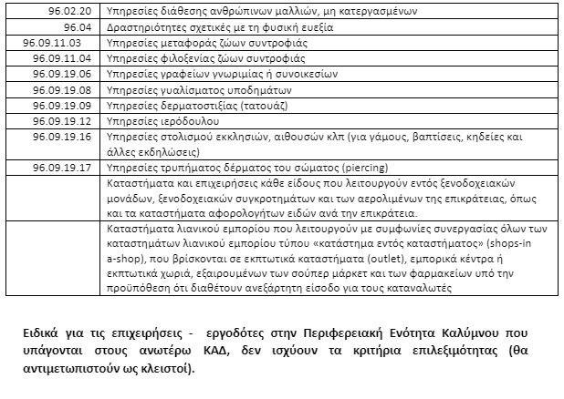 3. Για τις επιχειρήσεις-εργοδότες που υπάγονται σε ΚΑΔ του παραρτήματος Γ. Οι επιχειρήσεις-εργοδότες μπορούν να θέτουν σε αναστολή συμβάσεις εργασίας των εργαζομένων τους, οι οποίοι είχαν προσληφθεί έως και την 31/1/2021. Για τις επιχειρήσεις αυτές δεν ισχύουν τα κριτήρια επιλεξιμότητας.