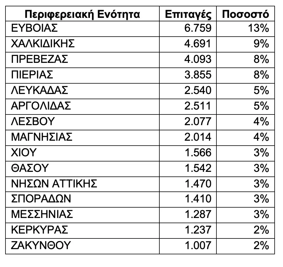 Οι 15 περιφερειακές ενότητες που καταγράφουν τον μεγαλύτερο αριθμό ενεργοποιημένων επιταγών σε τουριστικά καταλύματα τον περασμένο μήνα: