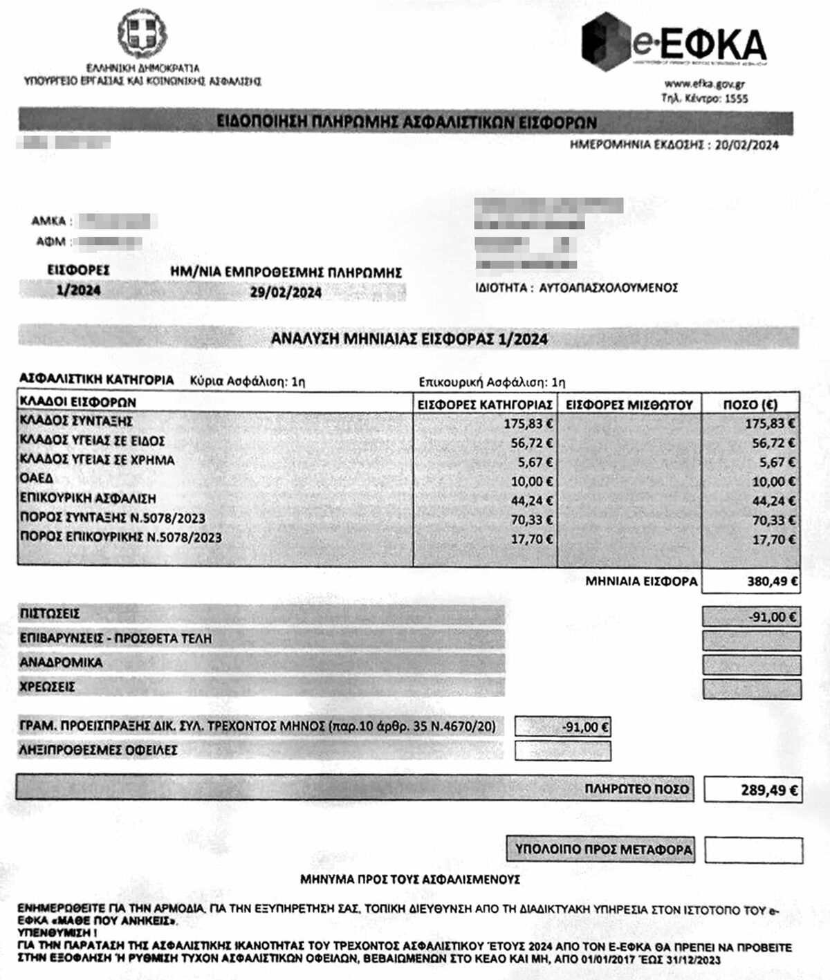 Αυτά είναι τα νέα ειδοποιητήρια με τις νέες εισφορές και τον ειδικό πόρο από 1ης/1/2024 για τους συνταξιούχους που εργάζονται.