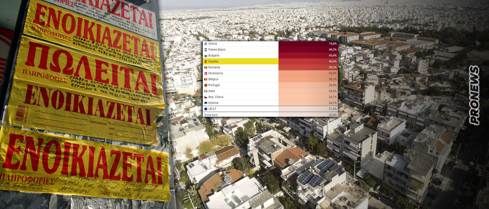 Το πόσο δύσκολο είναι να βρει σπίτι ένας Έλληνας το επιβεβαιώνει και η έκθεση της Κομισιόν, σύμφωνα με την οποία οι τιμές των ενοικίων είναι τόσο υψηλές και εντελώς ασύμφορες σε σχέση με το μέσο μισθό ώστε η Ελλάδα να είναι μακράν η πρώτη χώρα στον κατάλογο των 27 της ΕΕ με κατοίκους που δίνουν τουλάχιστον το 40% του εισοδήματός για ενοίκιο.