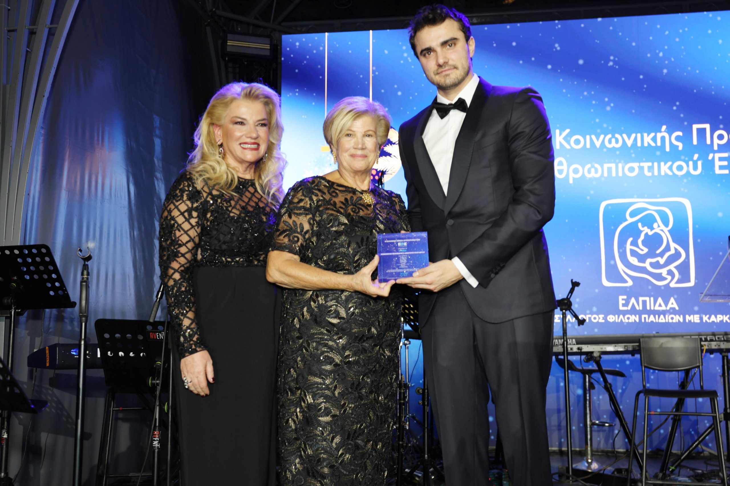Η Νούλη Μανώλη,  Αντιπρόεδρος Συλλόγου «ΕΛΠΙΔΑ» και ο Ανδρέας Βαρδινογιάννης με το Βραβείο «Κοινωνικής Προσφοράς & Ανθρωπιστικού Έργου» που απονεμήθηκε στην «ΕΛΠΙΔΑ» από την Άντρη Αναστασιάδη