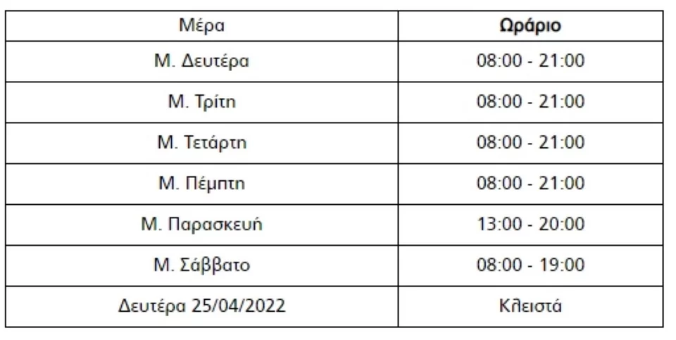 Υπενθυμίζεται ότι την Κυριακή του Πάσχα 24 Απριλίου και τη Δευτέρα του Πάσχα 25 του μήνα τα καταστήματα δεν λειτουργούν.