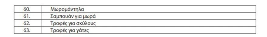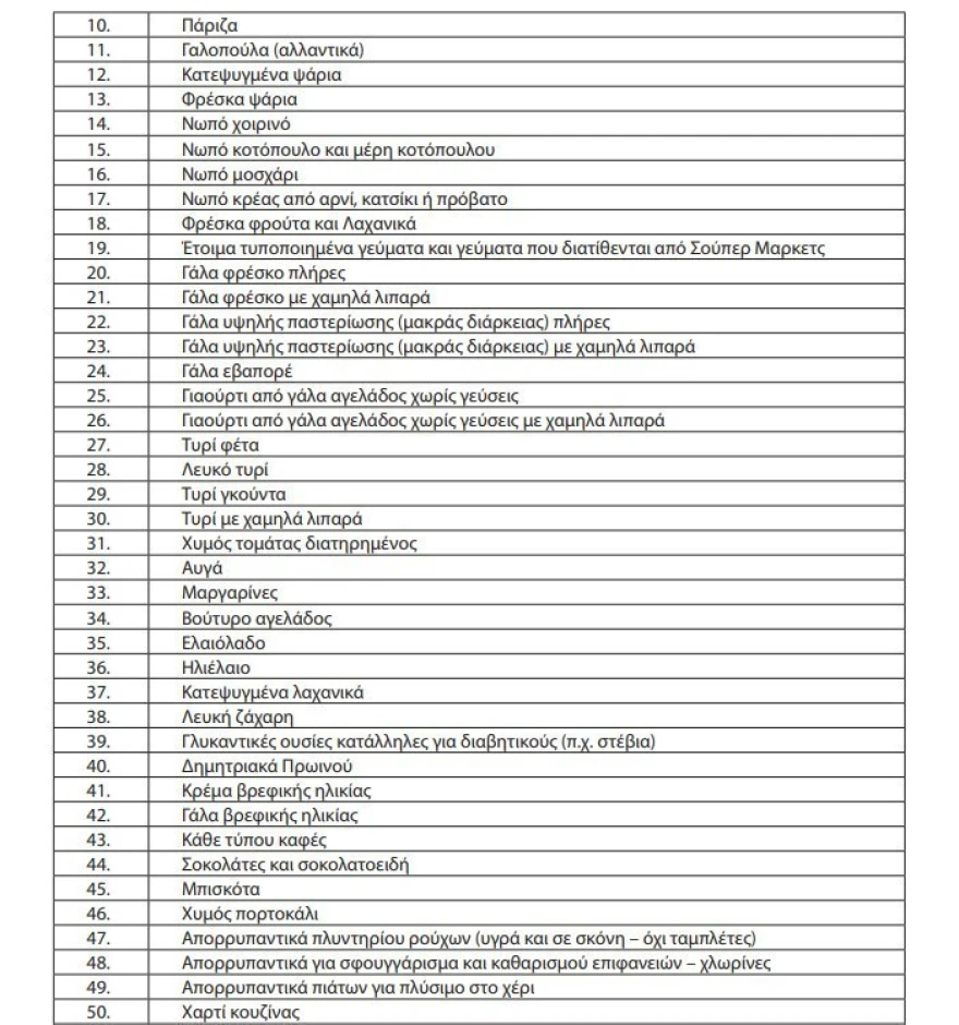 Η λίστα με τα 63 προϊόντα: