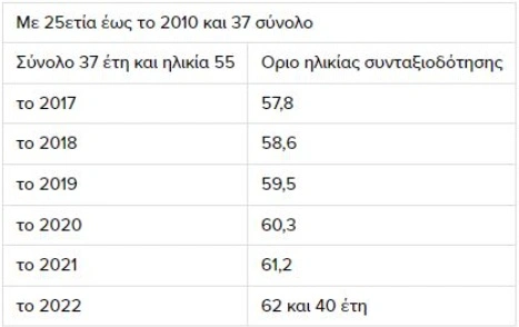 Για παράδειγμα, ένας ασφαλισμένος από το 1993 που είναι 55 ετών σήμερα συμπληρώνει φέτος 31 έτη ασφάλισης και η πιο κοντινή ηλικία για να πάρει σύνταξη είναι τα 62 έτη για μειωμένη σύνταξη, εκτός αν κάνει εξαγορές πλασματικών ετών από τώρα (π.χ. από στρατιωτική θητεία ή τέκνα ή σπουδές) για να έχει στα 62 του 40 χρόνια ασφάλισης, που θα του επιτρέψουν να κατοχυρώσει δικαίωμα για πλήρη σύνταξη.