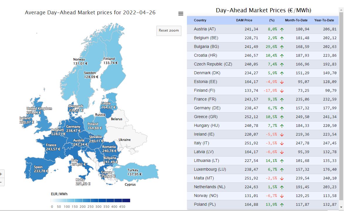 Όπως ανακοίνωσε η Ρυθμιστική Αρχή Ενέργειας, την Μ. Τετάρτη, η μέση ημερήσια τιμή στην Ελλάδα εκτοξεύθηκε στα 252,12 ευρώ, σημειώνοντας αύξηση 10,5%. Ενδεικτικά, αξίζει να υπογραμμιστεί πως δεύτερη είναι η Κροατία στα 246,57.