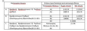 Στον παρακάτω πίνακα καταγράφεται η αξία των vouchers ανάλογα με την κατηγορία δομής. Στην γραμμή Γ αναφέρεται η αξία του μειωμένου voucher για τις υψηλότερες εισοδηματικές κατηγορίες.