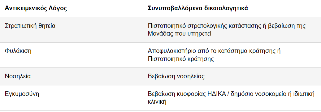 Ειδικότερα, οι αντικειμενικοί λόγοι και τα κατά περίπτωση συνυποβαλλόμενα δικαιολογητικά που αποδεικνύουν την αδυναμία άσκησης επιχειρηματικής δραστηριότητας είναι τα ακόλουθα: