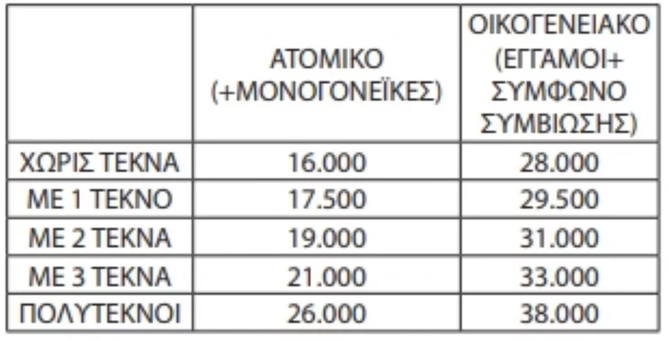 -όσοι έχουν υποβάλει Δήλωση Φορολογίας Εισοδήματος Φυσικών Προσώπων για το φορολογικό έτος 2020 και το ετήσιο οικογενειακό εισόδημά τους εμπίπτει στα οριζόμενα στον κάτωθι πίνακα εισοδηματικά κριτήρια.