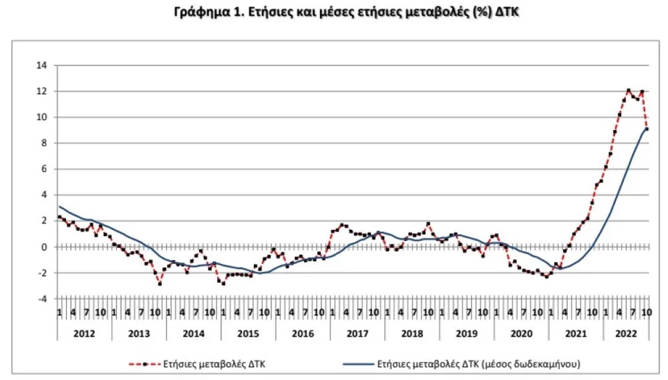 Το γράφημα της ΕΛΣΤΑΤ για την πορεία του πληθωρισμού:
