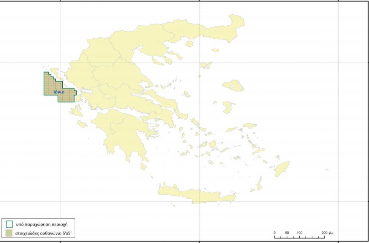 Ο διαγωνισμός αφορά συνολική έκταση 6671,13 τ.χλμ. στο Ιόνιο και 40.000 περίπου τ. χλμ. στην Κρήτη (20.058,4 είναι το μπλοκ Δυτικά της Κρήτης και 19.868,37 τ.χλμ. το μπλοκ νοτιοδυτικά), επί της ελληνικής υφαλοκρηπίδας.