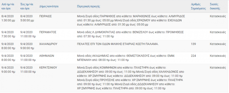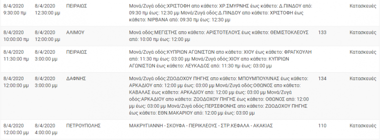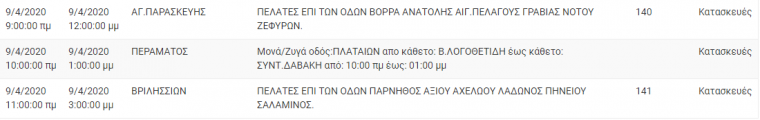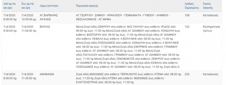 Στον ακόλουθο πίνακα, μπορείτε να ενημερωθείτε για τις περιοχές και τις ώρες προγραμματισμένων διακοπών ηλεκτροδότησης.